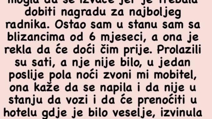 Ostao sam u stanu sam sa blizancima od 6 mjeseci, a ona je rekla da će doći čim prije.