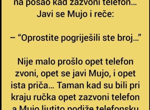 Nije malo prošlo opet telefon zvoni, opet se javi Mujo, i opet ista priča…