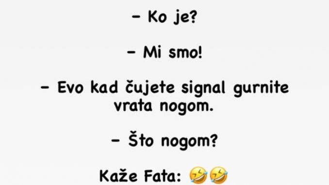 – Evo kad čujete signal gurnite vrata nogom.